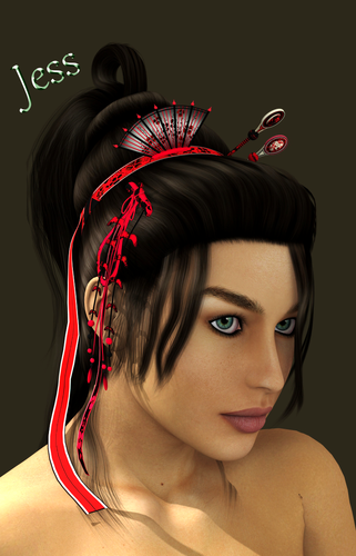 The Helena for V4 is a wonderful starting point for a light setup. This has been brightened a bit in postwork (corel photo paint, just using the lighten and intensify sliders) but you would like it "as is" too. Notice that the light is uneven, the lower part is not lit as much as the upper, and there is more light coming from your right.