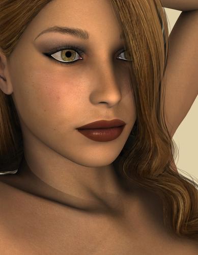 The character is Dulce, but her eyes aren't. I could not get the pupils black, they stayed white even when changing the diffuse and specular to black, and I think ambient already was black.