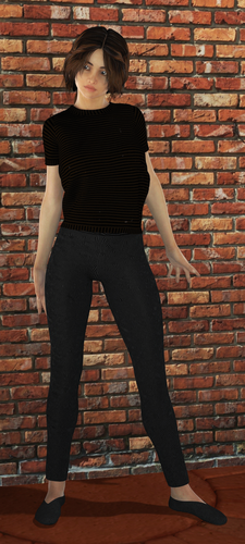 BTW, with Aave's GirlfriendZ outfit- don't let the pants (leggings) fool you in the viewport. They look like this but that is NOT the pattern. They render solid with a nice subtle texture. I looked at that and went, "Hmmm. Doesn't really go with the tops..." Am rendering a full length one right now, with a different lightset with mine added too.