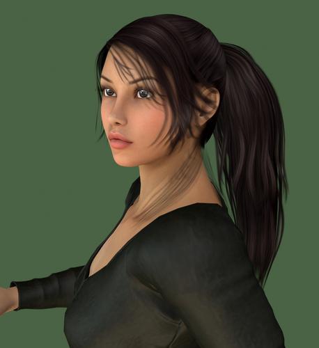 Anyway, for this render of Mina, bucket size is 24, ray trace depth 2, pixel samples 10, shadow samples 28, gain 1, gamma correction 2.07, shading rate .30, pixel filter sinc, pixel filter width 10.67.
