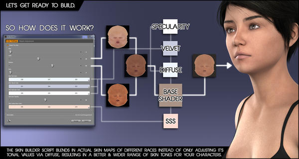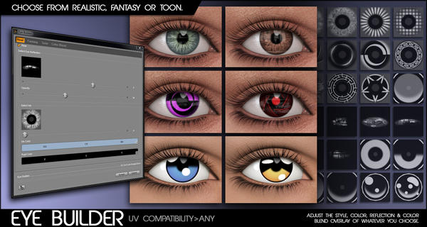 Uses V5 UV mapping so it will work for Genesis and Genesis2 Female. You can apply it to the Genesis2 Male as well, if you want your males to use female skin lol. But other aspects are universal, like the eye builder.
