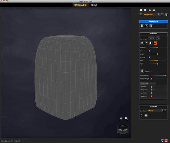 I'll make an example. Say you want to style some hair and beard. You can do it using only one shave group, and voilà, export it as a unique .obj.
