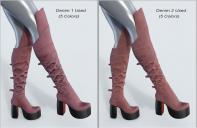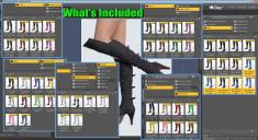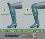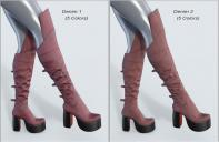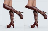 COG Jackboots for Genesis 8 Female are boots with two types of over-knee parts, morph for smoothing bootlegs, numerous morphs to adjust soles, heels and other parts of boots.