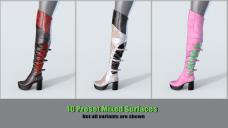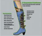 They come with Eight hiding options to hide various parts of boots and tons of textures: four metallic options for embossing, seven variants of main textures (each with 21 color variations), texture sets for smoothed bootlegs, ten color variations for stripes' buckles, twenty-one color variations for sole, sole's bottom and heel's tip.