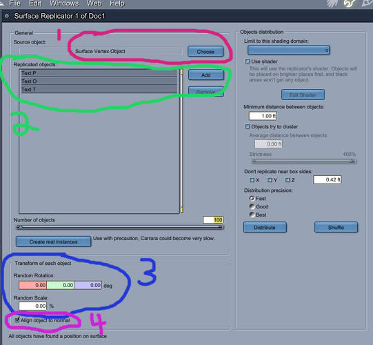 Number 2 in the pic is a list of objects to be replicated. I used the menu to select the T, the O, and the P.