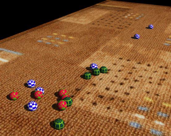 1) There is an object that represents the surface that another object will be replicated on. For now, call it a terrain.