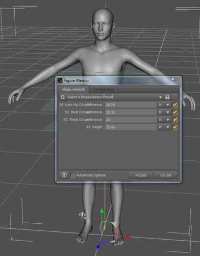 Thanks Jadrail. Yes I have read the documentation. I have no problems with the Measure Metrics dialog. I understand how to load & use use the Gen presets, and I can create new tape measures for other figures such as V4, but it's not clear how to get/create the Figure Metrics dialog box like in the second video. After reading the documentation I still don't get how activate/create the Figure Metrics dialog so we can just edit the lengths and figure adjusts accordingly. Do we have to save the Measure Metrics as a preset or something?