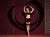 If you do a second version, I'd suggest tweaking her pose. The top half of her body seems oddly static when compared to the rest of her image. I think part of the problem is that her torso is over-rotated. I think you could untwist her by 5-10 degrees and get a much more natural looking pose without losing any of the muscular definition that your lighting shows off. Rotating her bottom half might actually work better than rotating her top half. That way you can keep the framing of her face and shoulders. I suspect it would also make the lighting on her rear end a little less noticable. Right now, I find the bright rim lighting on the lower half of her lower half (I hope that's a forum-appropriate way to say it!) a bit distracting, although that may just be personal taste. But I do think your lighting makes her abs the star of the image - so if I were you, I'd let that be the focal point of the composition.