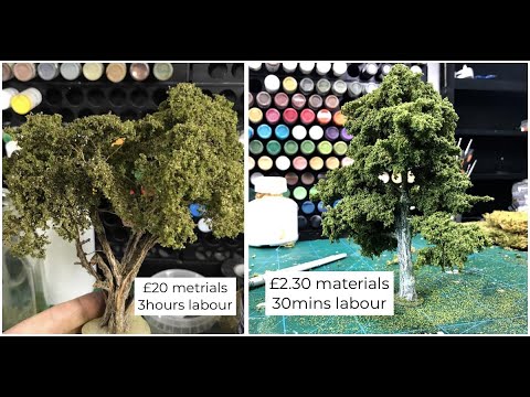 you could make nicer minature trees by hand using pipecleaners for pines, and paper covered wire, glue and flocking for others with beading leaves from a craft shop