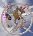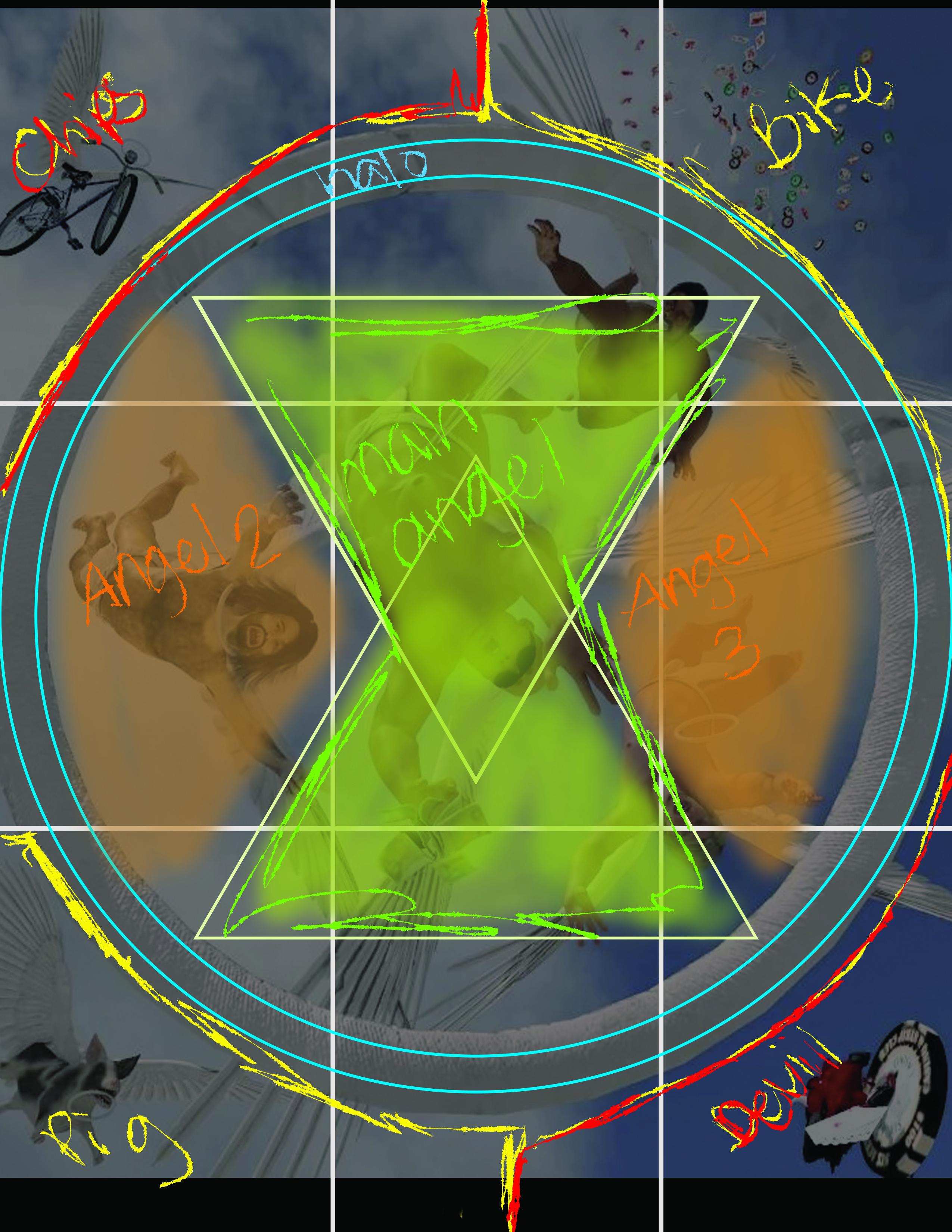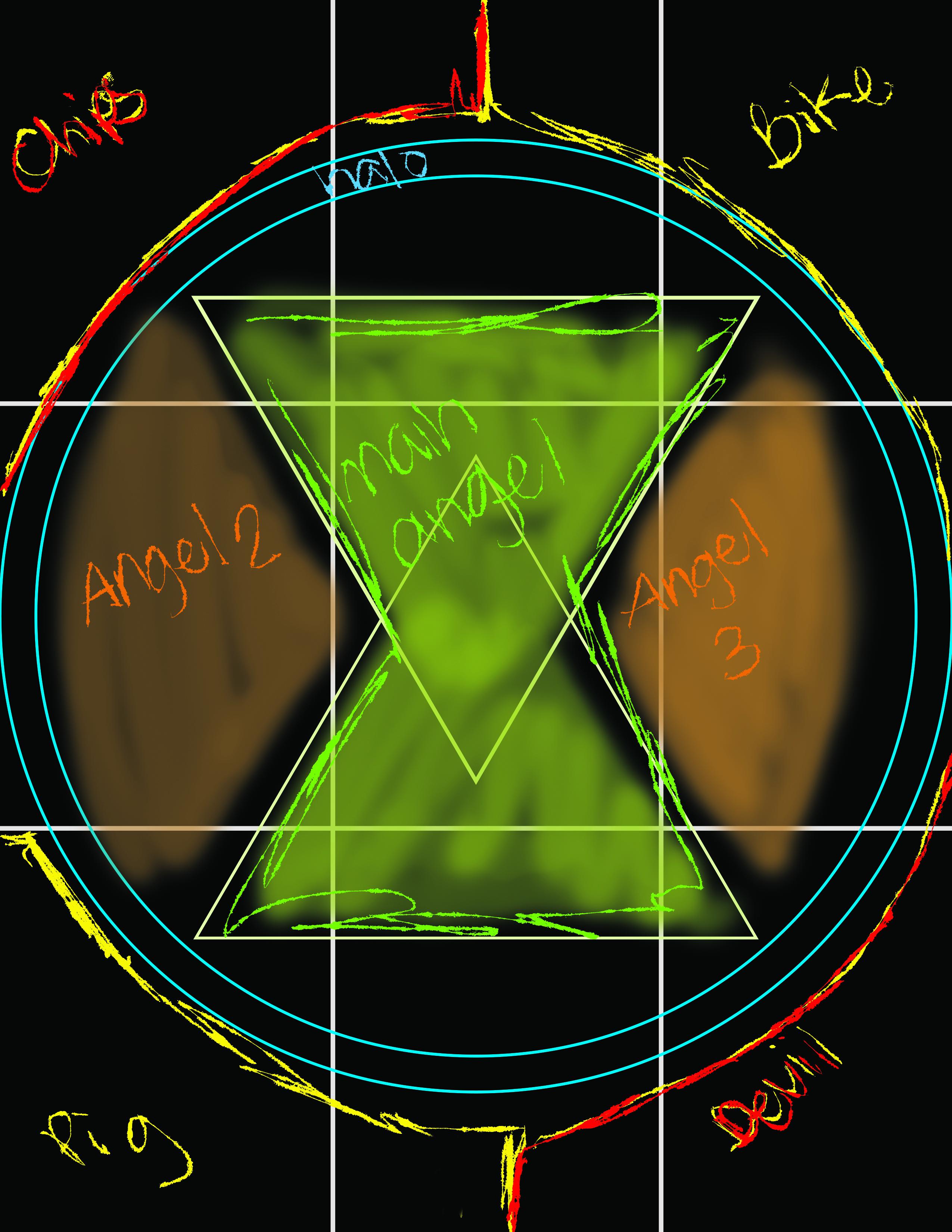 So here are some composition markers that I thought of. You might still need to get rid of one of the extra falling angels. Either that or try to put two angels in one of the orange sides (though that might be too crowded with the wings).