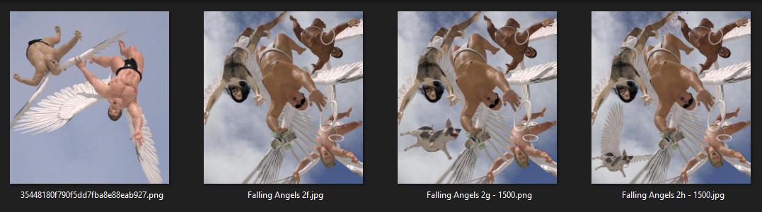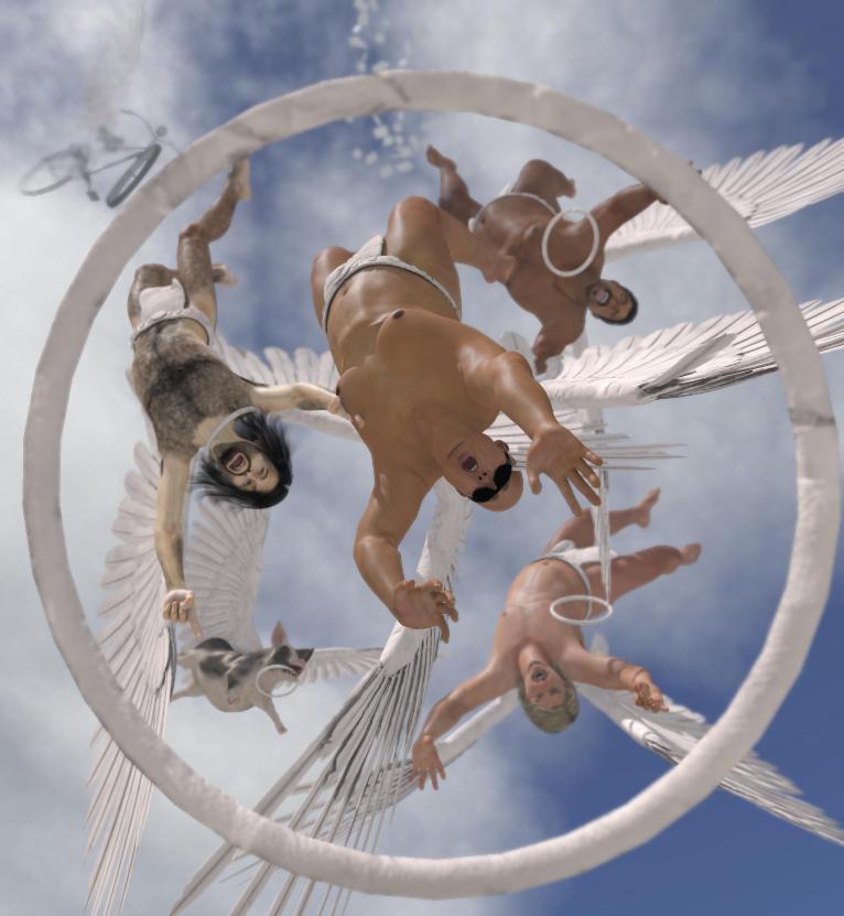 I love it! Easily the best things about this render were how creative and clear the story was. Just the name tells us enough to understand these angels were up to no good and got kicked out of heaven. I love how dynamic the poses and the expressions are, which help sell their downfall.