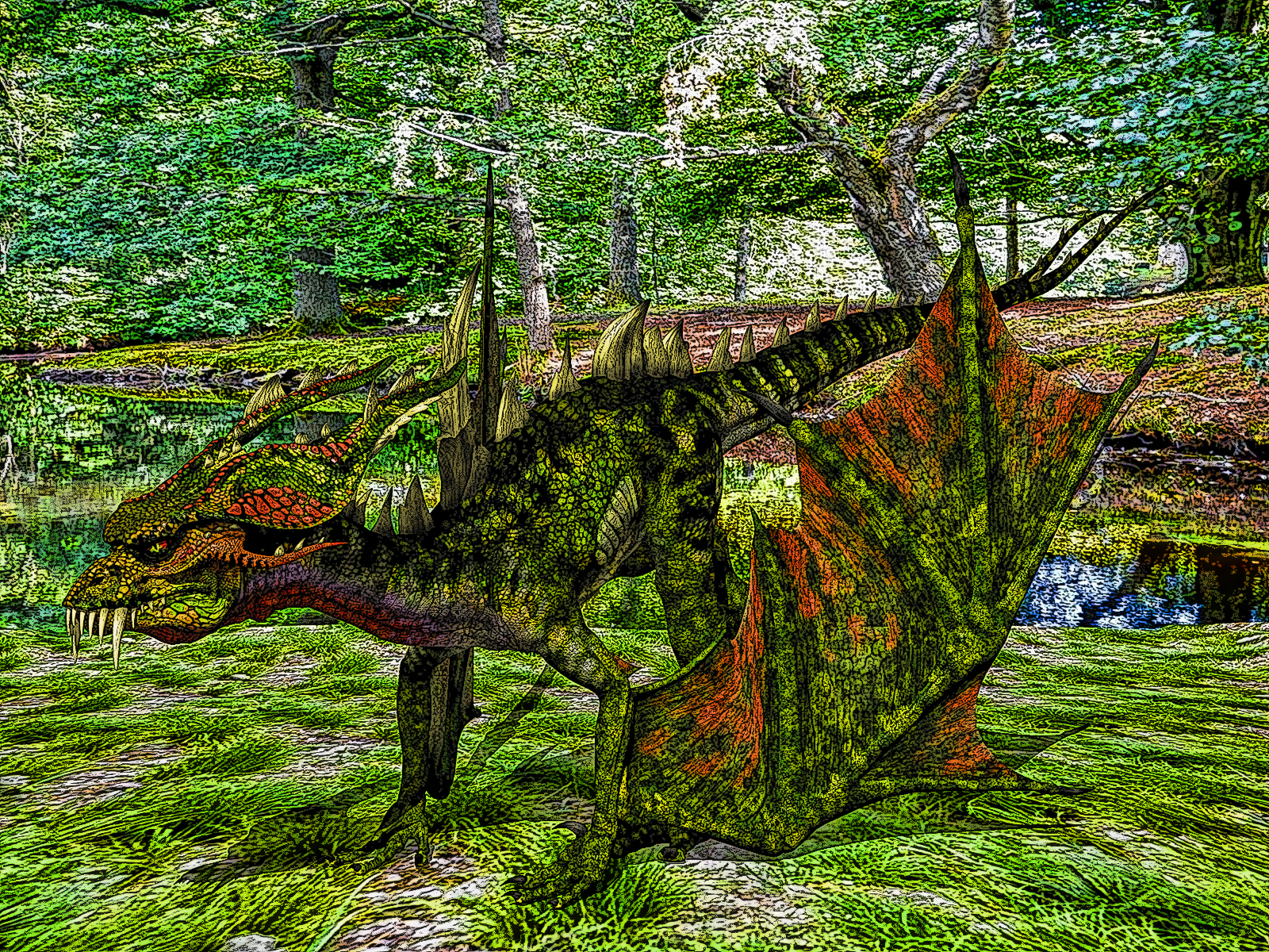 Title: Red Dragon in Woodlands