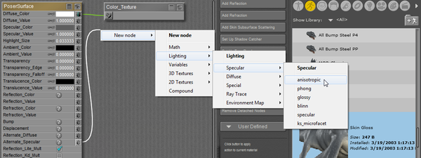 Onto the procedural elements (non 2D maps) within Poser that you asked about.