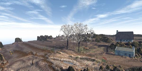 You made me thinking, worked on a copy to be safe, reduced the size of the red flowers and add some,moved the yellow flower buds a bit and made them a tad smaller and increased the frequency on some parts of the terrain material.