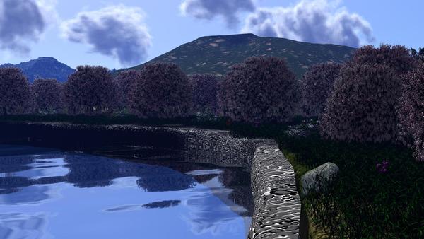 @GusNemo and @Horo, I'm going to try to put another tree smack in the middle of the view to kind of break up the mountain. It's funny, you both said that the mountain imposes and detracts from the view of everything around it, and that's exactly what I thought was cool about it. Ah well. I suppose the render is supposed to be about the spring flowers in the foreground and not the scene as the whole. I might try to shrink it a little too, but not a lot, we'll see.