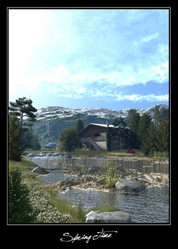 This is another L.A.A picture (about 3,3 GB) and I've use xfrog trees to populate the scene. Mountain house modeled in wings3D.