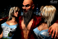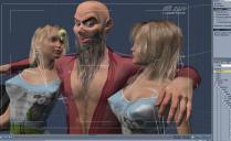 M3 and a couple of G2 gals are the characters.  Sheep outfit is Restless, M3 outfit is M3 everyday wear modified with shaders and displacement.  Hair is M3 beard and Miwa Anime.  Background is a random scene grabbed from the internet and modified in PSE (didn't have time to build a background).  GMIC LyleJK filter.