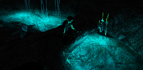 I was hoping someone here could help me out. I am working on a render, it's in a cave with water. I would like to have the water glow kind of like in this picture. http://static.zerochan.net/Shuriken.Rev.full.323373.jpg I'm not sure what is the best way to do this though. Any advice would be most appreciated.