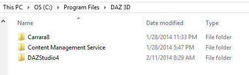 Okay, it's been a long time since I had to search for Default Scenes, Objects, Shaders for Carrara , but neither the 32 or 64 bit version of Carrara 8.5 have them in their. (all programs had to be re-installed when Upgraded to Win 8.1)