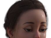 Those brown spots on her forehead are a known issue. They are created when the skullcap of the hair intersects with your character's forehead. Check to see if the hair includes expanding morphs and use those to expand 1-5%. If they don't go away, keep expanding the skullcap until they are gone.