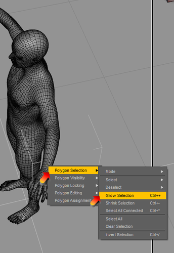 At the moment I'm trying to make a short sleeve bodysuit that does not have a short sleeve option. It would be easier to be able to mass select the arms and hide/delete the polygons in the major areas of the sleeve and then use the more careful selection method for the areas that require it.