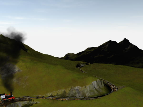 The train itself is easy enough to model, especially when it's streamlined. And the terrain isn't so bad, and with a little fine-tuning, the realistic sky looks fine. No, the challenge that I face is the track. Is there a way to make it follow the terrain reliably?