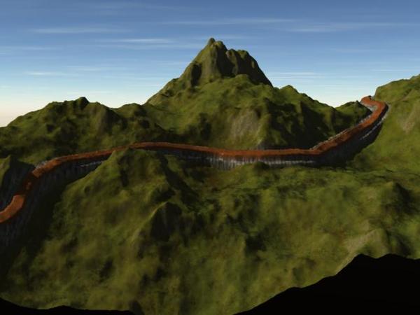 Great wall of China? Yes, well done. I was actually experimenting with ways to make a wall through a terrain when this railroad thread was started. I was considering doing a wall (maybe the Roman walls in Scotland) for the fence challenge, but changed my mind. Someone could use this same method to make a RR track, or a wall, or a fence, or anything else that stretches across an undulating terrain or to span bridges. The more practiced a person is with the polyline tool, the easier and better this would be. Unfortunately, I've only just started experimenting with the polyline tool, but I can see a lot of potential.