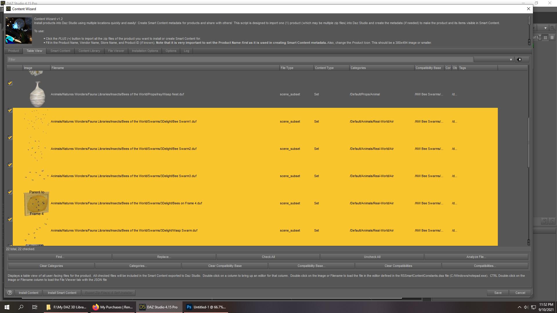 Im having an issue.  I purchased a Bee Swarm from the other store any was trying to install with Content Manager.  I set all the catagories up like usual, then I usually check the tabs to make sure everything is in the right place. The Props are correct but there is no Animals catagory showing at all.  I unchecked the Filters to look and theres not one listed there either but when I look under Smart Content in DS the Animals folder is there (It only shows the land animals since I didn't set the catagories for previous air animals).