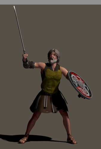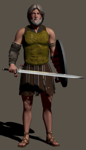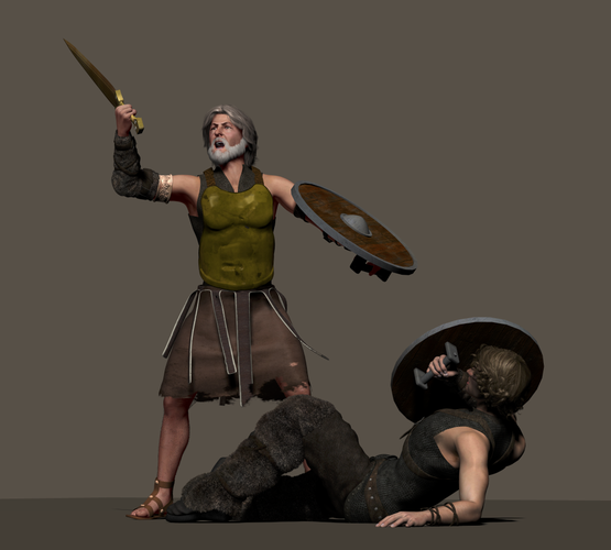 Here he is so far. many thing will most likely be changed but this is the direction i am going with him. he will being standing over an Amorite soldier on the ground.