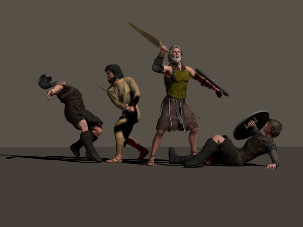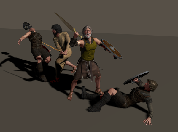 OK. Im still working on posing and placement of characters. here is the latest so far. I haven't decided on a camera angle yet. right now i want to make this look good from all angles.
