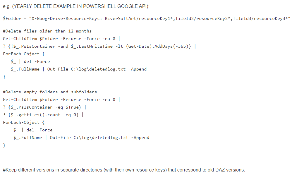 e.g. (YEARLY DELETE EXAMPLE IN POWERSHELL GOOGLE API): see attached image
