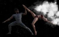 Then I tried using PowerPose. Again, I really liked it at first. My biggest problems were remembering which mouse button to push, and tending to move the mouse at an angle instead of purely side-side or up-down. But again, fine-tuning was an issue (although ActivePose was harder). I had the most trouble with her arms and her neck. Trying to figure out which "joints" to move in the collar/shoulder area was tough, and getting that area to play nicely with the shoulders was a problem. This is where I started to have a lot of trouble figuring out what issues stemmed from the tool's limitations, what stemmed from my limitations, and what was due to the pose. After a lot of wrestling, I got her in what I thought was more or less the same pose as my reference. Then I rendered the image and found that her pose somehow made her look like a bobblehead toy. The image is attached below, if anyone's morbidly curious.