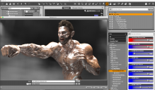 One more SubD3 level render with the AME, Maxx/Brute 8 blended figure. This time I turned Muscle Definition up to 50% and reduced Veins to 50%. And posed the figure with one of Muscleman's excellent bodybuilder poses.