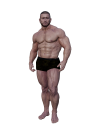 More of my beefy guy using The Brute HD and Maxx with AME at 25% and various other morphs dialed in. The football shorts are from a set for the G3F and work well for this G8M character. This render took about 5 minutes and then a quick stop through Photoshop for contrast and tone enhancement and title.
