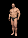 Here is my final, I believe, version of Scott Mainz. I did some sculpting on the navel, traps and lowers abs. As I have mentioned in the past, this is an actual, fairly accurate, representation of a wrestler I knew (thank you Daz3D Metrics). As such, lean muscles and arms and heavy duty core and legs. I know many of you are probably tired of seeing my many iterations of this character. I may post a couple of different poses if anyone is interested.