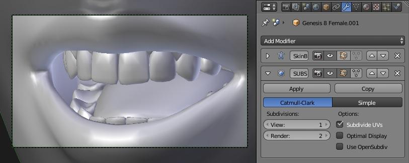 Up until several months ago, it wouldn't have mattered. Even exporting at base resolution, the subd in Blender was totally different. But I can happily report that since Blender 2.80 switched back to OpenSubD (and I simply hadn't tried it in that long a time), exporting at base resolution and applying the subd modifier in Blender works much, much better now... there are still slight visible differences, for example the lips of my character appear less full and more parted, and she is ever so slightly less muscular, but now it can easily be compensated for with morphs in Daz such that it ultimately has the desired appearance in Blender. This is excellent news. If @Padone had not mentioned the "problem" in the plugin, I would not have thought to try it again since the change to the subd algorithm in Blender.
