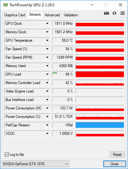 I have no experience with gaming, but when rendering the load on my factory overclocked GTX1070 is about 99.5% average ("Current" reading shifts constantly between 99 and 100%).  Temperature rarely goes over 60 degrees C though (well cooled case) so no serious problems and never any shutdowns because of overheating.  It's been working fine for 3 years now.