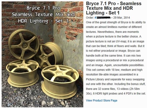 By the way, we also have a new product that came up today http://www.daz3d.com/new-releases/bryce-7-1-pro-seamless-texture-mix-and-hdr-lighting-set-1.