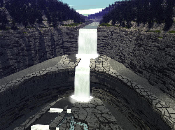 Dana, very impressive indeed, the animation really shows off the details of the various lattice layers you have used to create the gorge. The light is excellent. From a technical perspective I was most impressed with those bits of billowing spray you have dotted around on the falls. A very difficult topic you have chosen for this. Three weeks though... it's a long wait. I'd be worried about power cuts!