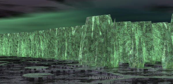 * Icebergs3: A simple curved lens, but with a crystal texture instead of simple glass. Weird result, but I like it!