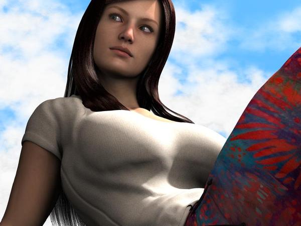 @electro-elvis: Another nice lady. Well rendered. Peculiar point of view (like you are a cat, looking up at her).