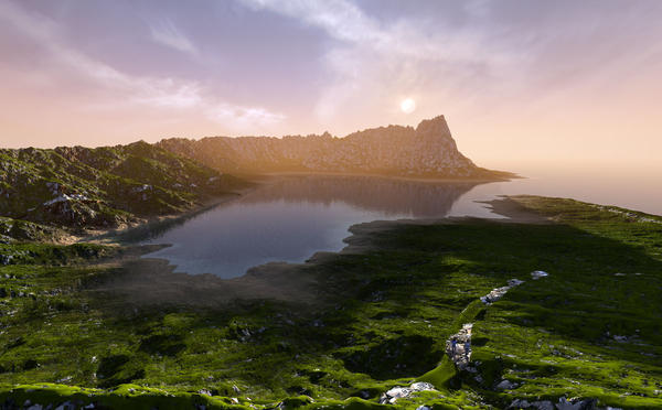 @Horo: Another great stacked terrain scene. Is it me or do the foreground rocks(?) on the right seem a bit glassy? Still, wonderful work.