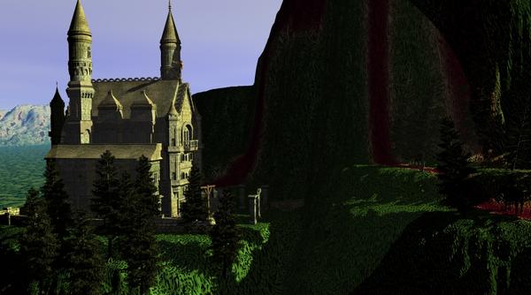 There is a reason for the dark shadows and where they are. Without them the illusion of the road going to the castle is lost because then you can see them running straight up the face of the mountain :bug: As you can see in this image. The horses and knights would need climbing gear to get there :-)
