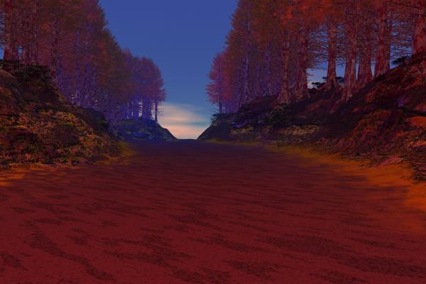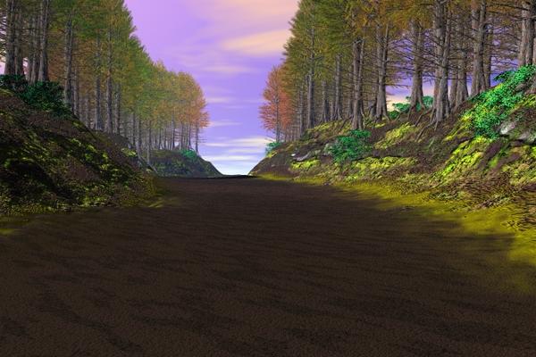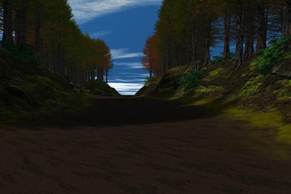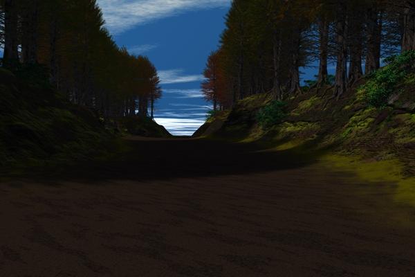 @Roland: Those first images are really neat, especially the colors used in the first one. You last image is nice with the tree line and foreground. The two things which strike me are the material for the lane and the sky color. Perhaps a lighter lane material and color for the sky. And instead of adding the additional light you could see if moving the sun around accomplishes the same thing. It's just something I would give a try.