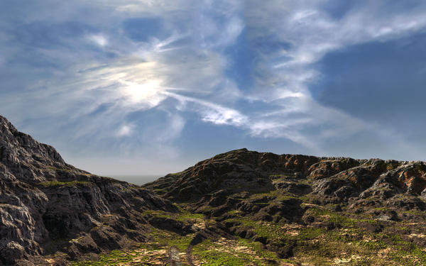 I keep on Earth at the moment and experiment with terrains. IsleW-Pass. The pass on which we have our observatory is at 2000 m exactly, the pass shown is at a lesser altitude.