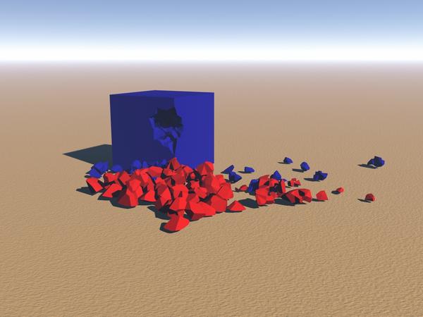 I didn't use dissimilar enough textures, a good part of that rubble pile is the sphere that hit the box, I'm still learning my way around Houdini, I can tweak the simulation so the sphere doesn't break up so completely.. but until then, I've retextured the rubble pile to clearly define what is Box pieces and what is left from the sphere.