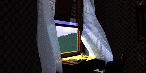 @Horo: Thanks. I agree with your assessment of the water, it would do what I wanted so I left it where you see it and played with elevation. After I saw the rendered image I saw why that water wouldn't do what I wanted. Still, ain't to shabby for an accident. I'm sure glad you didn't dump that image, it's wonderful. I didn't notice the guy waving until I read about it in your post. He's a nice touch.