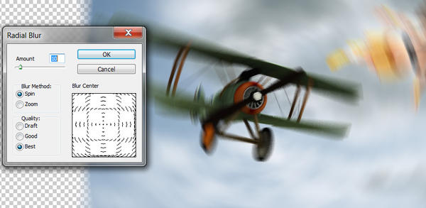 Am hoping to get the rudder section of the plane in motion, just to finish off this piece of artwork I have, how do I do a circular blurry motion of the rudder in flight?