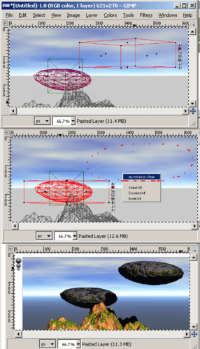 Something odd about instances that has been bothering me, maybe somebody knows the answer. If you create an instance, you unfortunately often can't see it in the preview, (sometimes, but not always). A quick test right now shows that the instance is invisible if it is not selected, and if selected (if you can figure out where it was), the bounding box but not the mesh becomes visible. However while you move it, it becomes invisible again, so you have no way of knowing where you moved it until you let go. For this reason I often avoid instances and just create duplicates, even though that's inefficient, because it's almost impossible to exactly position or scale instances. However, I have noticed that SOMETIMES I can suddenly see instances in Wireframe mode, although still not in Texture Shaded mode, but only under certain conditions that don't last that I can't identify. In this screenshot, you see the instance when it's selected (top), the invisible instance but I can still click on where it is when the original is selected (middle) and the render showing it really is there. (I can't get a screenshot while moving it showing that it goes invisible though, and I did actually see the wire mesh for this instance briefly earlier in the test.) If there's a way to make it stay visible, that would help tremendously. Even knowing the rules for why it appears/disappears might help to avoid it or perhaps redraw it.