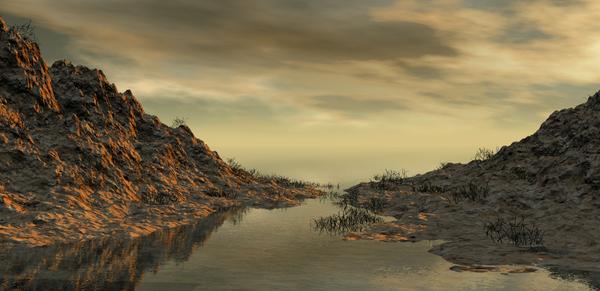 Here's my first effort. Actually trying to re-create a scene I rendered in Carrara, from a heightmap I made in Bryce - coming full circle!